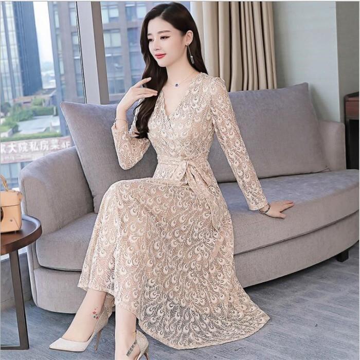 結婚式やお呼ばれに 優雅で繊細なレース 七分袖膝丈ワンピース Lace Dress Casual Women Lace Dress Lace Dress