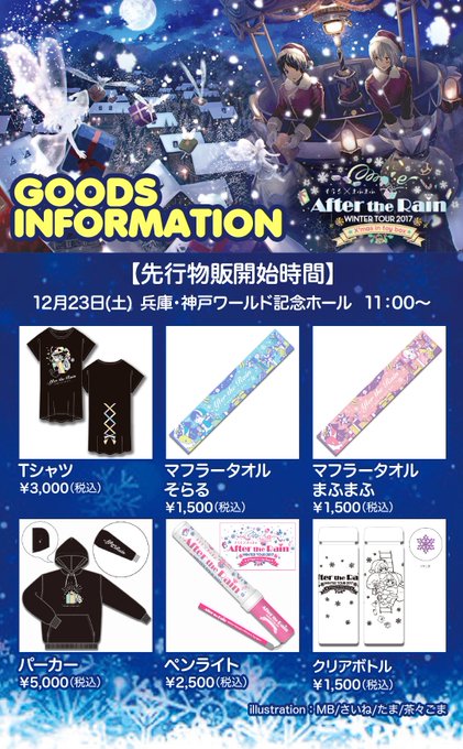 ^ "After the Rain、たまアリ2DAYSワンマン開催「雨乞いの宴」と「晴乞いの宴」" 音楽ナタリー 18年5月10日 閲覧。 ^ "After the Rain、富士急ハイランドで初の野外ワンマン「真夏のそらまふ大発生!!」" 音楽ナタリー 年3月31日 閲覧。After the Rain 日本武道館 17 公式グッズ AtR ペンライト まふまふ そらるほかアイドル・芸能人グッズが勢ぞろい。ランキング、レビューも充実。アマゾンなら最短当日配送。 AtR(After the Rain)19富士急の物販とグッズの売り切れ時間 AtR富士急ライブの物販も始発組が多そうな予感・・・。 茶々ごまさんのイラストのグッズは毎回人気があるので、新グッズで在庫が多いからといって油断していると売り切れになる可能性も!
